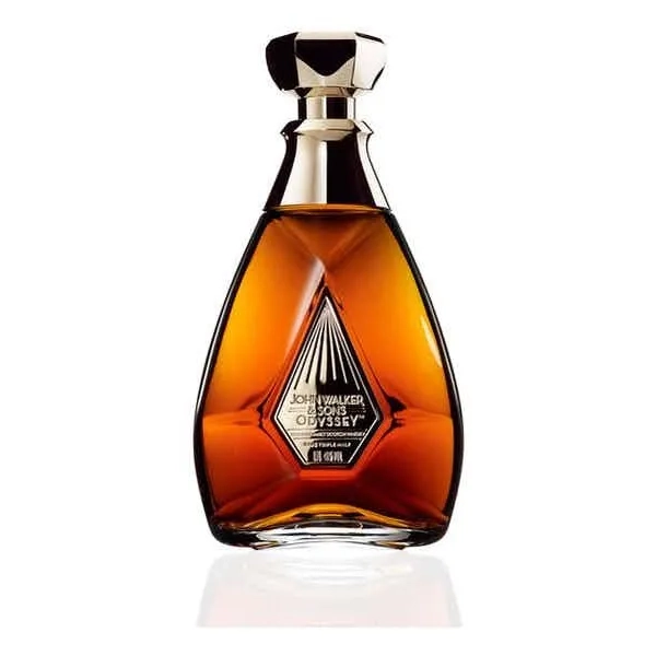 Description: John Walker & Sons Odyssey Blended Scotch Whisky is a premium blend housed in a unique decanter-shaped bottle that symbolizes the journey of John Walker & Sons across the globe. It features an exquisite aroma with notes of honey, caramel, and dried fruits. The palate is rich and complex, offering flavors of dark chocolate, orange peel, and a hint of smoke. The finish is long and luxurious, with lingering notes of spice and oak. This whisky is a true testament to the art of blending.